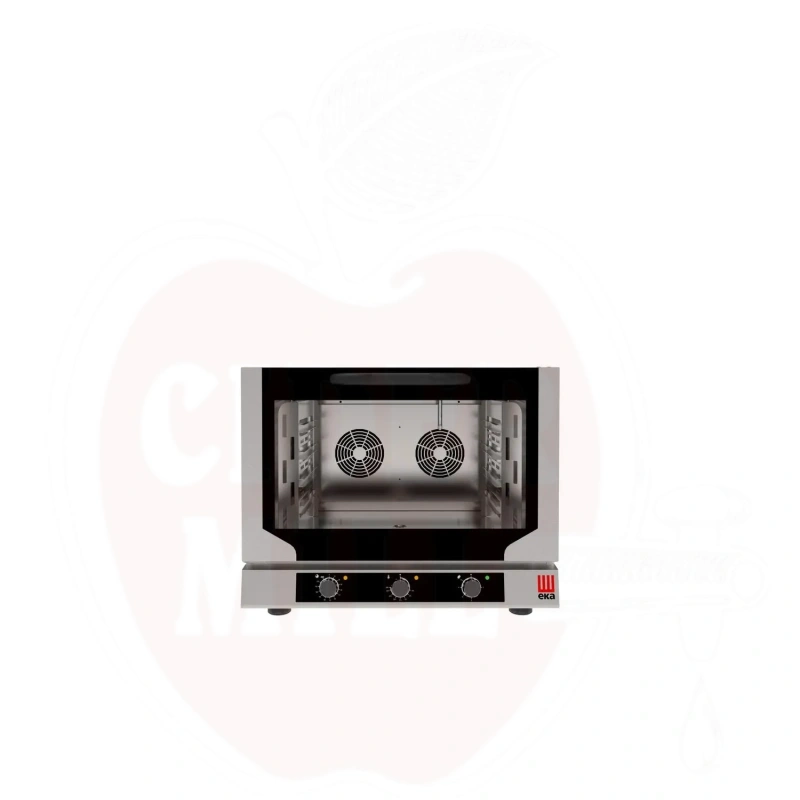 Töökindel ja vastupidav konvektsioonahi toiduainetööstusele, varustatud kvaliteetsete L-kujuliste kandikutega. Seadme korpus ja küpsetuskamber on valmistatud kõrgekvaliteetsest roostevabast terasest AISI 304.