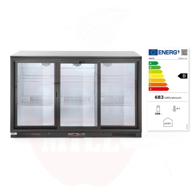 Baarikülmik 254L kolme liuguksega Arktic must 220-240V/160W 1350x520x(H)865mm