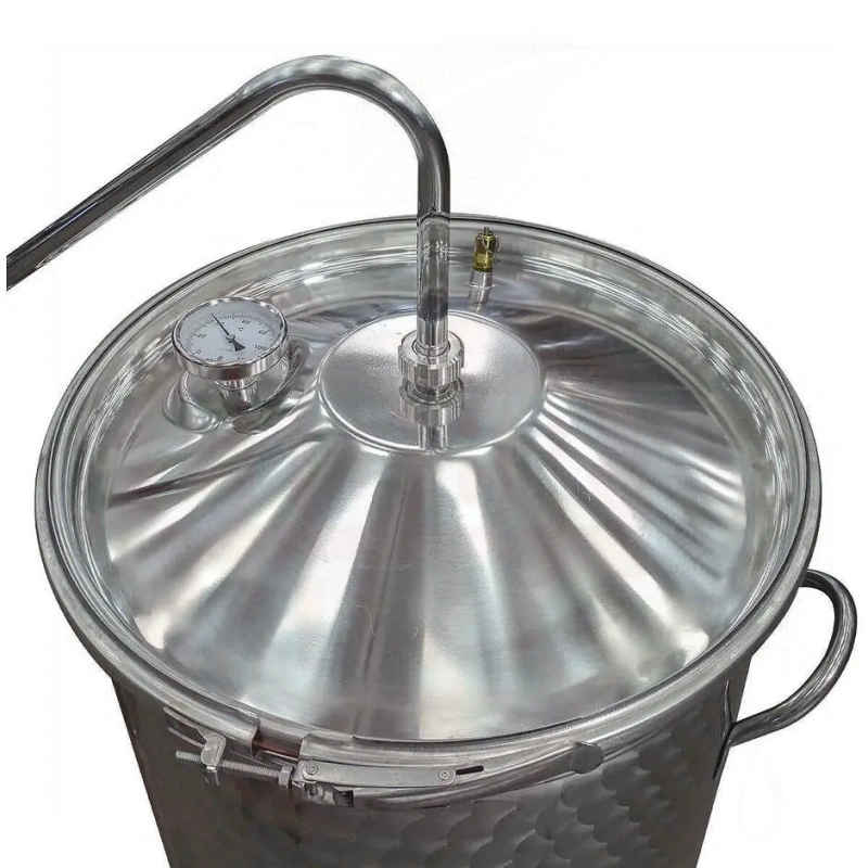 Omadused: Valmistatud täielikult AISI 304 roostevabast terasest hügieeni ja vastupidavuse tagamiseks. Õhukindel klambersuletav kaas tõhusaks destilleerimiseks. Sisaldab analoogtermomeetrit ja turvaklappi. Küttemahuti maht 200L, jahutimahuti 35L. Sisemised peegelpinnaga ja välimine lillekaunistusega viimistlus. Sisaldab eemaldatavat roostevabast terasest võrgufiltrit ja jahutusspooli tõhusaks kondenseerimiseks.