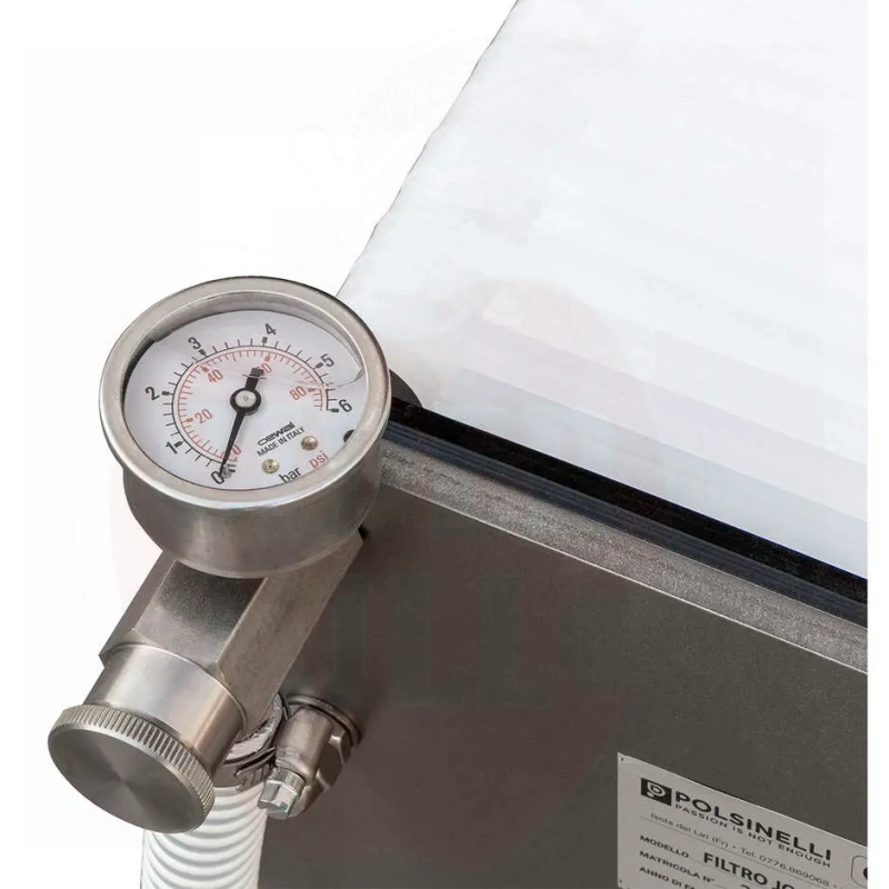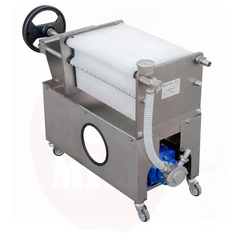 Omadused: Valmistatud AISI 304 roostevabast terasest raamiga ja rattaga käru tagab mobiilsuse. Komplektis 31 toidukvaliteediga Moplen plaati, 30 filterplaati (20×20cm), vooluregulaator manomeetriga ja elektriline pump (0,5HP). Filtreerimispind: 1,2m². Voolukiirus: 150L/h.