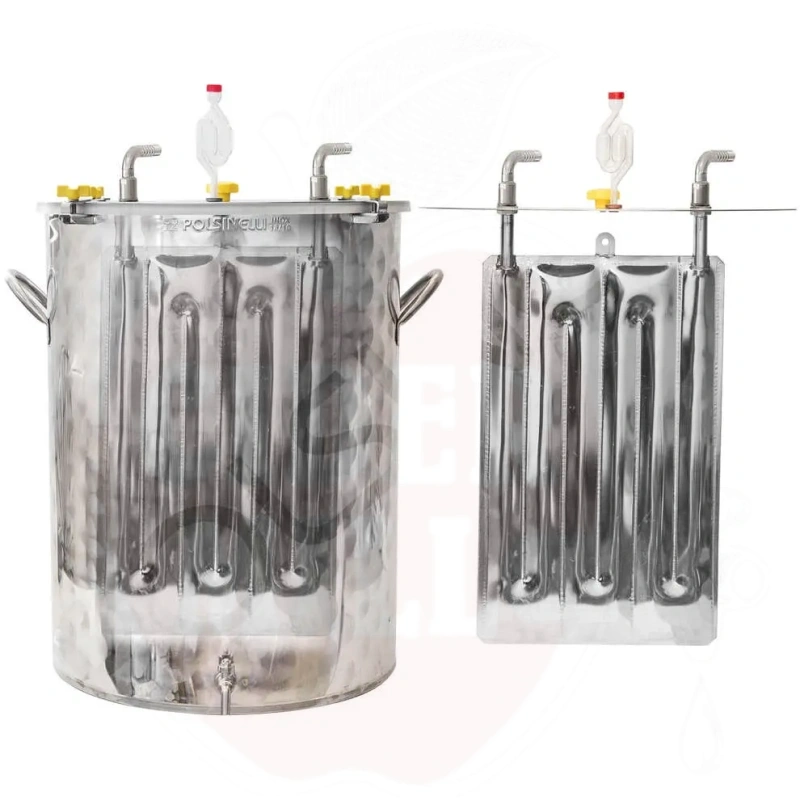 Omadused: Valmistatud toiduainetetööstusele sobivast AISI 304 roostevabast terasest, peegelpoolitud sisepinnaga, välispinnal lillemustriga, keevitatud ümmarguse põhjaga kerge puhastamise tagamiseks ning roostevabast terasest hermeetilise kaanega, millel on kääritusskork. Standardvarustuses roostevabast terasest ventiiliga (pärmisette jaoks), analoogse termomeetriga, sondikinnitustega ja nelja kinnituskonksuga õhukindluse tagamiseks. Eemaldatav toiduainetetööstusele sobiv silikoonvõre tagab hügieeni ja sanitaaria.