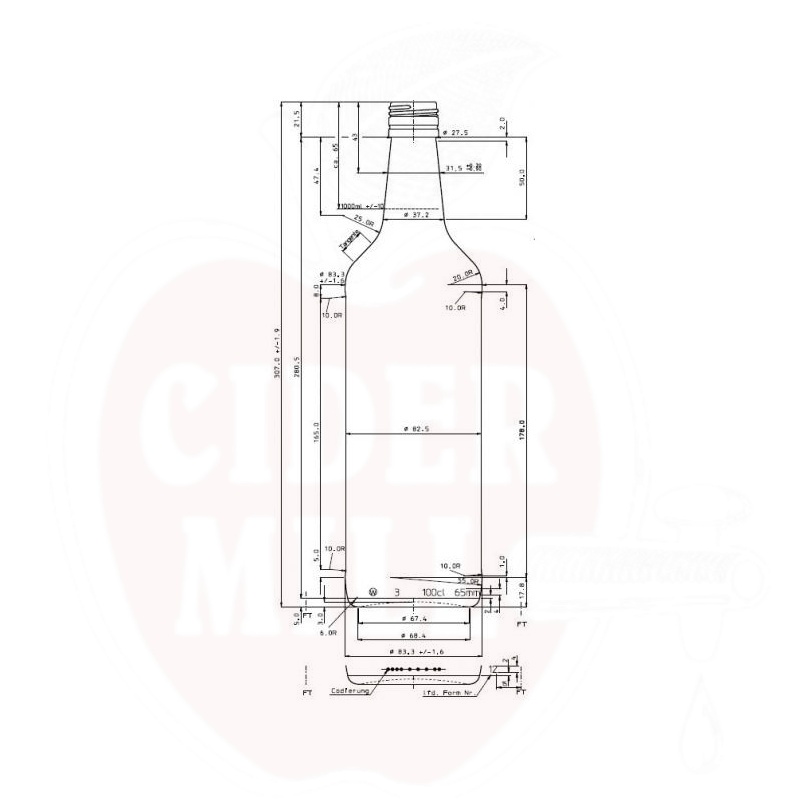 Klaaspudel 1000ml Aperitif PP31,5mm, 1056tk