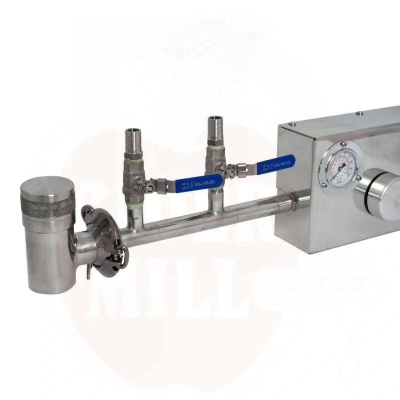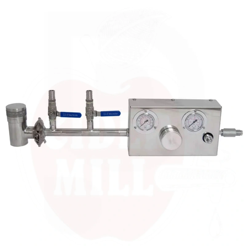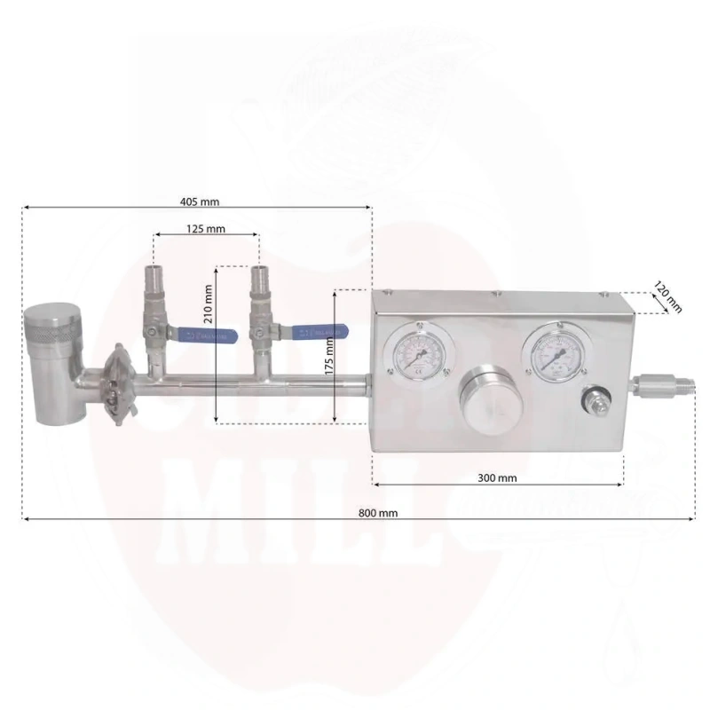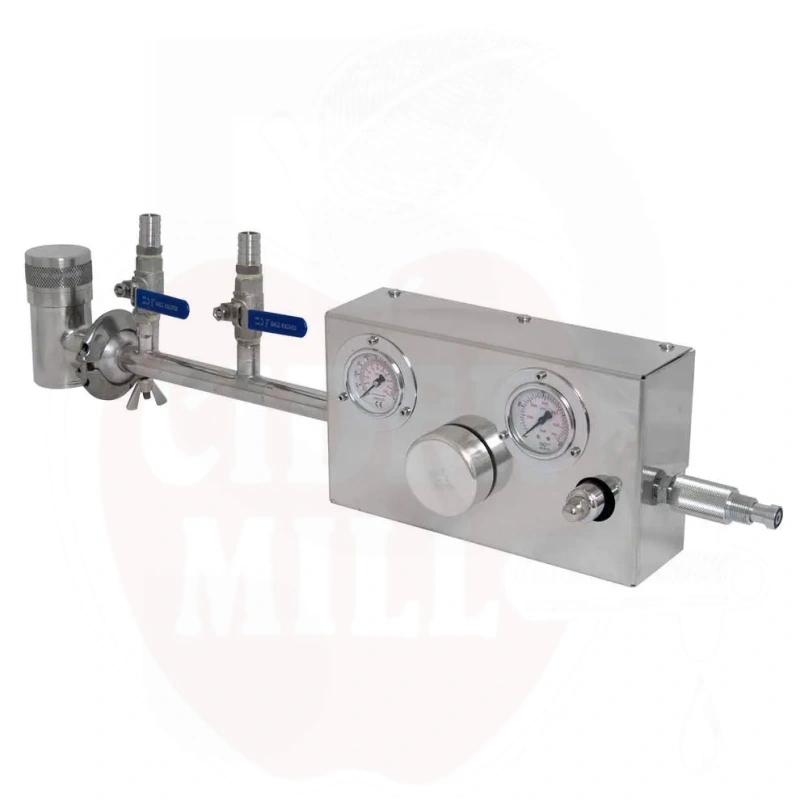 Omadused: Kahepoolne roostevaba terase ohutusventiil Garolla ühendusega, 2 roostevaba terase kraani voolikuotsikuga, kahetasandiline lämmastiku rõhuregulaator, roostevaba terase torukeerdus juhtploki ja lämmastikuballooniga ühendamiseks.