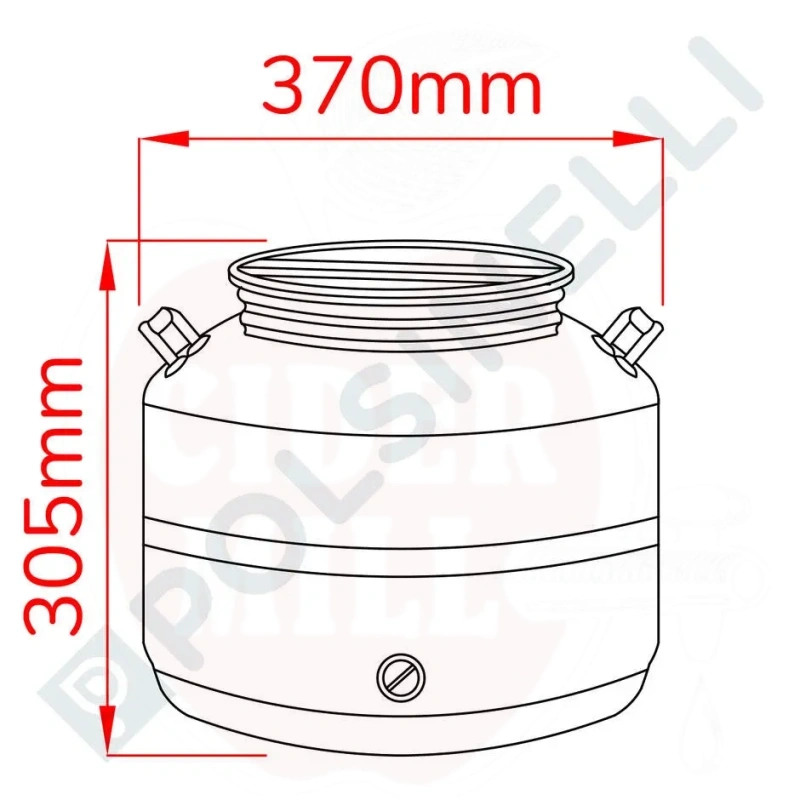 Tehnilised andmed: Maht: 25L. Kaal: 4,2kg. Kõrgus: 320mm. Põhja läbimõõt: 360mm. Ava läbimõõt: 230mm. Kraani ettevalmistus: 1/2". Kontramutter ja tihend ei ole vajalikud.
