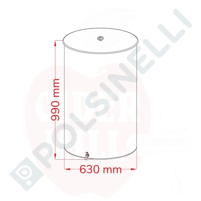 Tehnilised andmed: Maht: 300L. Läbimõõt: 630mm. Kõrgus: 990mm. Seina paksus: 0,6mm. Põhja paksus: 0,7mm. Vaseliinõli ei kuulu komplekti (vajalik kogus: 1,5L).