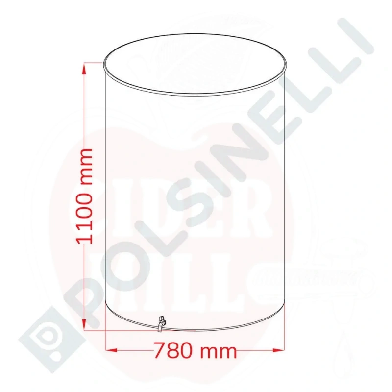 Tehnilised andmed: Maht: 500L. Kõrgus: 1100mm. Siseläbimõõt: 780mm. Seina paksus: 0,6mm. Põhja paksus: 0,8mm. Kaal: 20kg. Lame ümardatud keevitatud põhi. Kraan paigaldatud 3/4" keermega. Üks analoogmanomeeter. Elektrita.