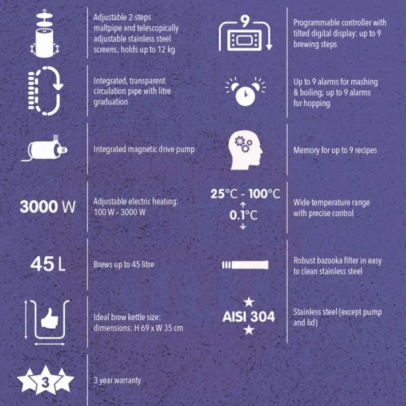 Brew Monk on täiuslik roostevabast terasest õllepruulimise süsteem, mis ühendab kolm olulist protsessi: meskimise, filtreerimise ja keetmise. Seade võimaldab valmistada kuni 45 liitrit kvaliteetset virret ühe pruulimiskorraga.