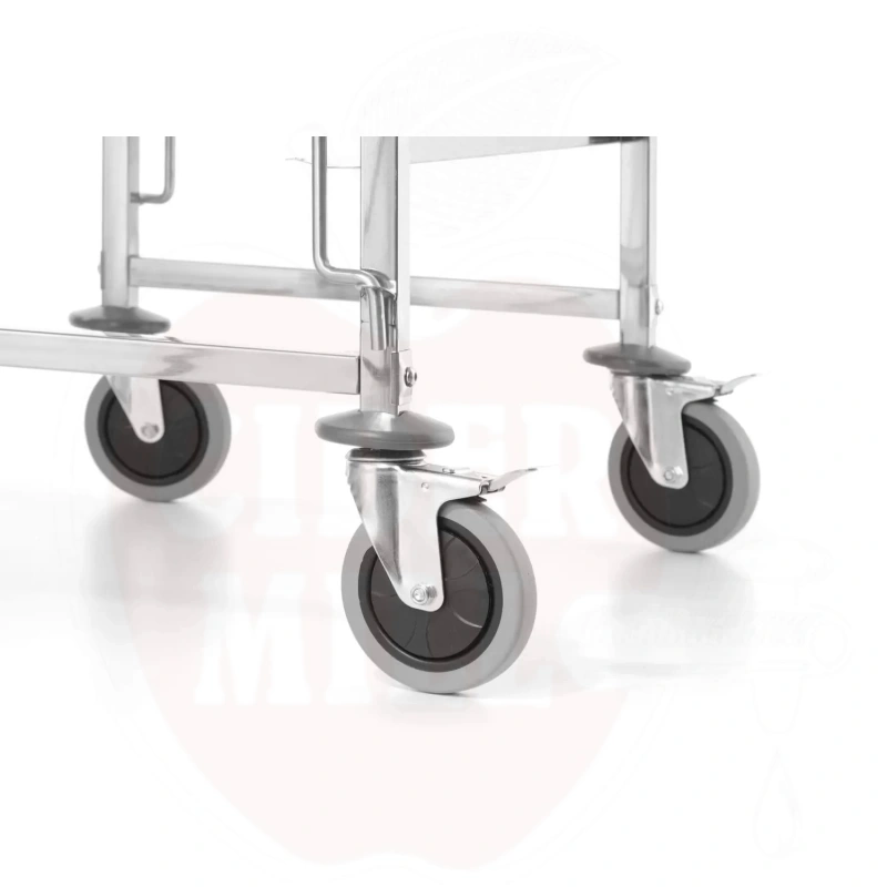 Professionaalne GN aluste transpordikäru on valmistatud kvaliteetsest roostevabast terasest, tagades pikaajalise vastupidavuse ja lihtsa puhastamise. Käru on varustatud nelja suure kummist rattaga (läbimõõt 100mm), mis tagab sujuva liikumise ja hea manööverdusvõime.