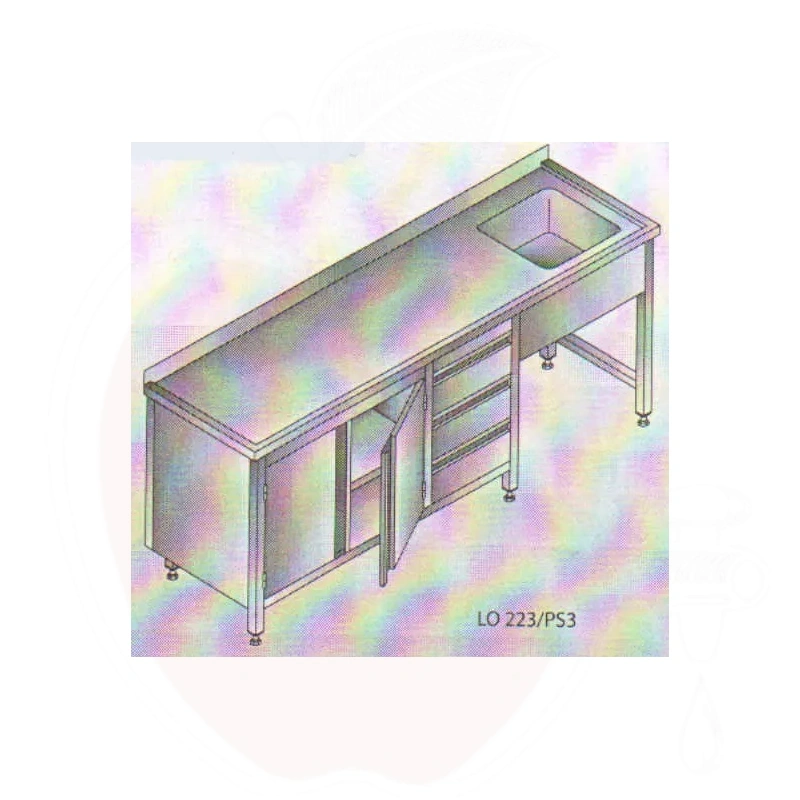Roostevaba laud 2400x600x850mm, valamu paremal, sahtlid ja kapp