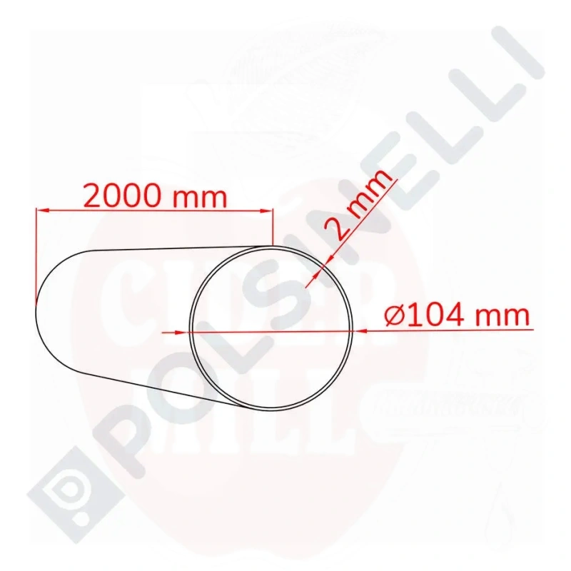Tehnilised andmed: Materjal: AISI 304 roostevaba teras. Läbimõõt: 104mm. Seinapaksus: 2mm. Pikkus: 2m.