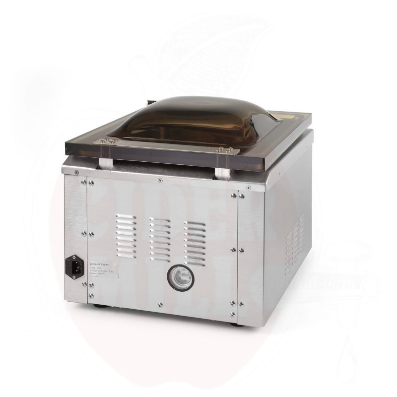 Seadme süvendatud põhi ja läbipaistev kuplikujuline kaas võimaldavad pakendada suuri toiduportsjoneid. Roostevabast terasest konstruktsioon tagab pika kasutusea ja lihtsa puhastamise.