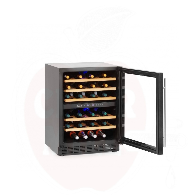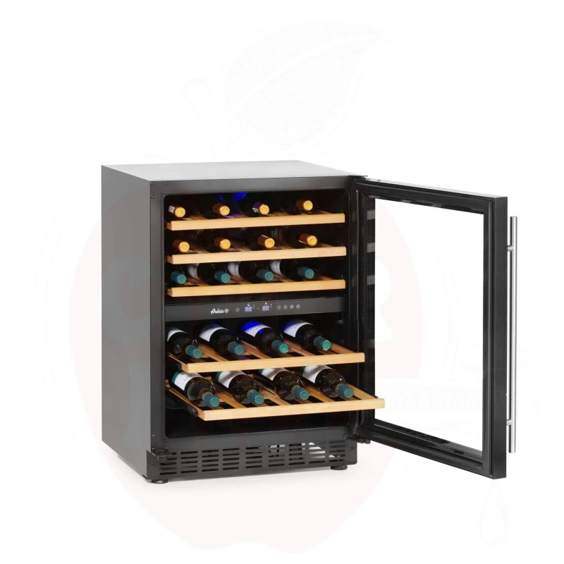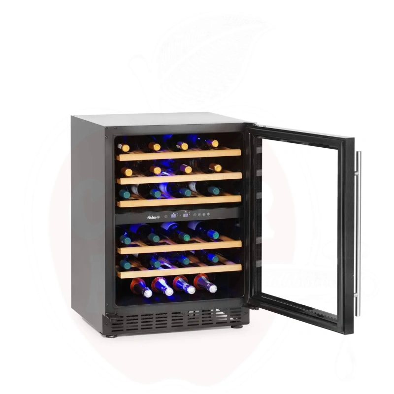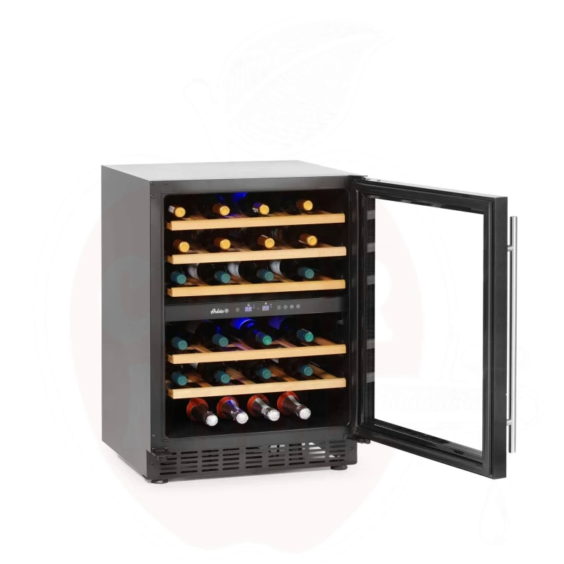Luksuslik veinikülmik mahutab kuni 46 veinipudelit, võimaldades hoiustada teie väärtuslikku kollektsiooni ideaalsetes tingimustes. Külmiku viis vastupidavat riiulit on valmistatud kvaliteetsest melisöögipuidust, mis säilitab oma vormi ka muutliku niiskustaseme korral.