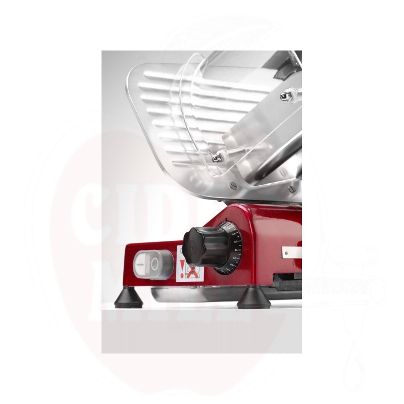 Suure jõudlusega viilutaja 250 mm läbimõõduga roostevabast terasest lõikenoaga tagab täpse ja ühtlase lõiketulemuse. Seade võimaldab lõigata tooteid läbimõõduga kuni 180 mm, mis teeb selle ideaalseks nii väiksemate kui suuremate toiduainete viilutamiseks.