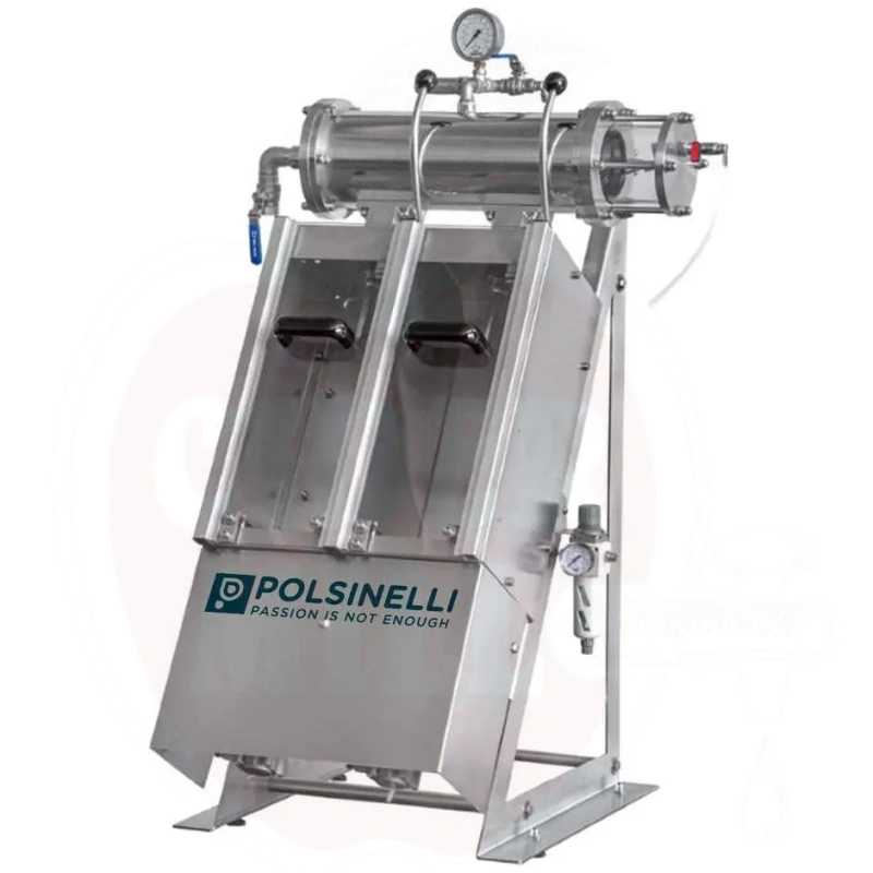 Omadused: Valmistatud roostevabast terasest ühest laseriga lõigatud plaadist, kõik toiduga kokkupuutuvad osad elektropoleeritud optimaalse voolu ja minimaalse vahutamise tagamiseks. Varustatud automaatse pudeli tõstmisega pneumaatilise kolvimehhanismi abil, kiire pudelisuuruse vahetamise võimalus ja analoogmanomeeter inertgaasi juhtimiseks. Vastupidav roostevaba terasest konstruktsioon, sealhulgas mittetoiduga kokkupuutuvad osad, vastupidav nii happe- kui aluseliste lahustega pesemisele. Igal mahutil on sertifitseeritud ohutusklapp seerianumbri ja testisertifikaadiga.