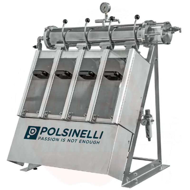 Tehnilised andmed: 4 otsikut, maksimaalne pudelimõõt 0,75L, kuni 200 pudelit tunnis, maksimaalne töörõhk 5 bar, kaal 60kg. Automaatne pudelite tõstesüsteem roostevabast terasest kõrgekvaliteediliste pika löögiga kolvide abil.