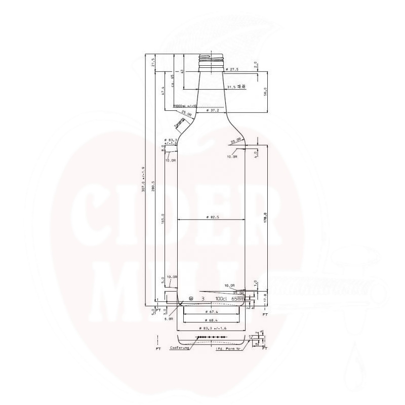 Klaaspudel 750ml/400g Bordeaux läbipaistev, 1631tk