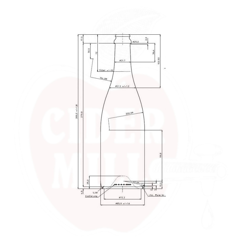 Klaaspudel 750ml/775g Champagne roheline 29mm, 1056tk