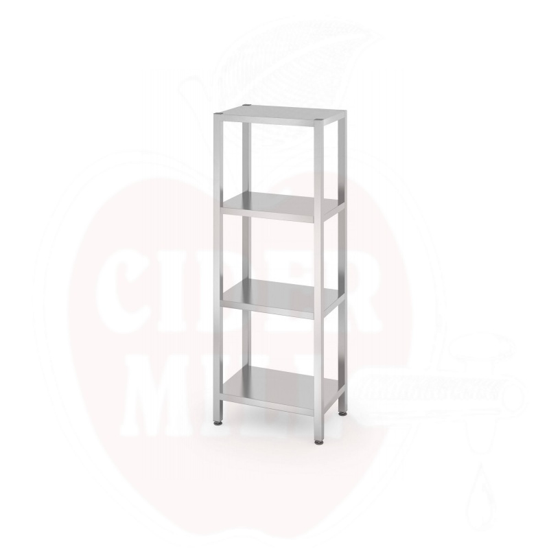 Luotettava ja vahva hyllyjärjestelmä on valmistettu laadukkaasta AISI 430 ruostumattomasta teräksestä, joka takaa pitkäaikaisen kestävyyden ja hygieenisen pinnan. Rakennetta vahvistavat 30x30 mm profiilista valmistetut jalat, jotka mahdollistavat hyllyn kuormituksen jopa 70 kilogrammaa neliömetrille.