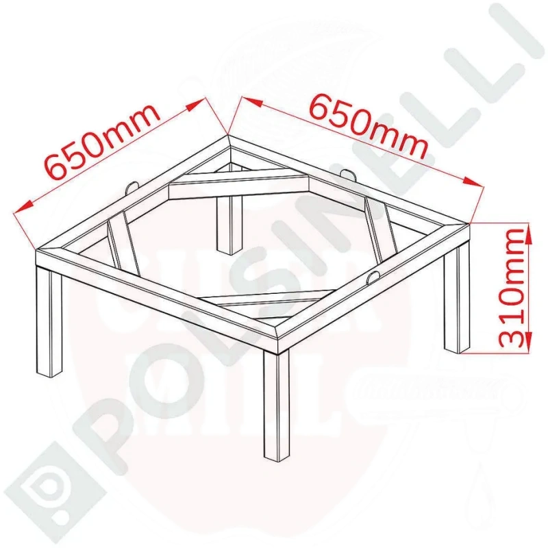 Ruostumattoman säiliön erikoisalusta 630x630x310mm