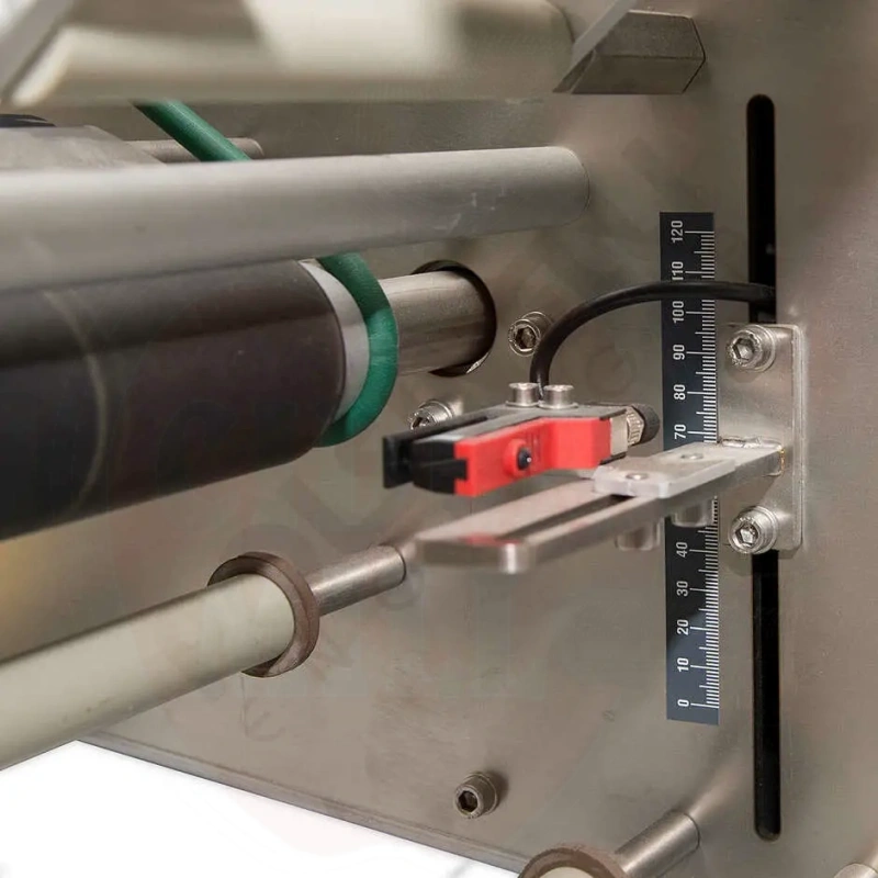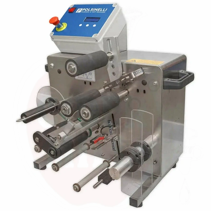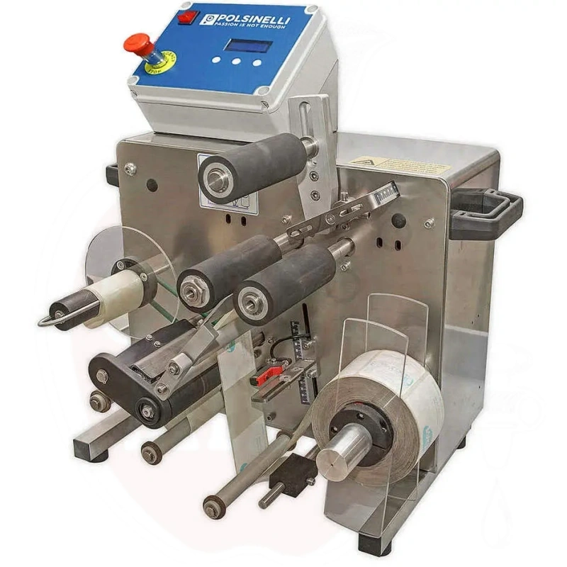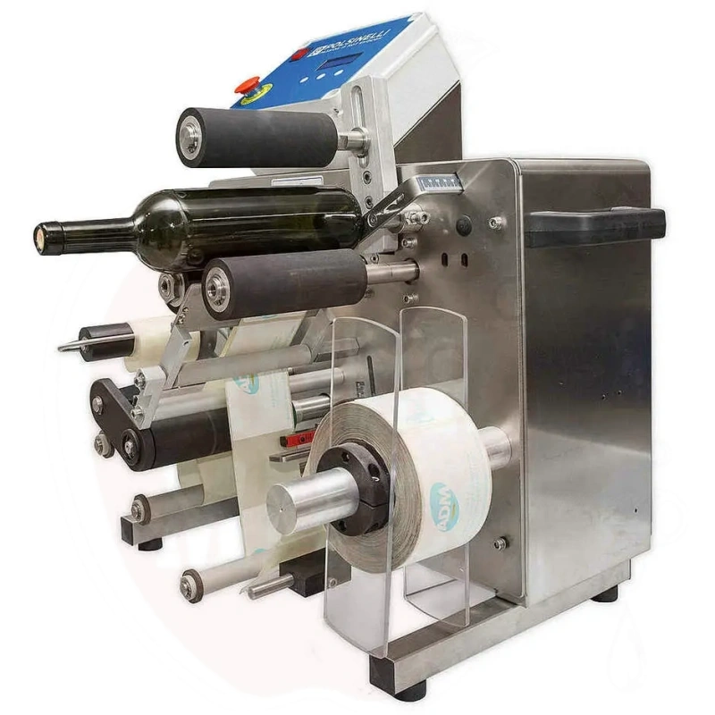 Ominaisuudet: Ruostumattomasta teräksestä valmistettu kotelo, integroitu PLC ja digitaalinen näyttö parametrien valintaan sekä sähköpneumaattinen lämpösiirtokirjoitin erä-/koodaustulosteisiin (merkin koko: 5mm, tulostusalue: 15x30mm). Yhteensopiva etikettikelien kanssa halkaisijaltaan 270mm asti. Etikettien enimmäismitat: 280x140mm. Pullon halkaisija: 45–120mm. Hyväksyy synteettisten materiaalien astiat.