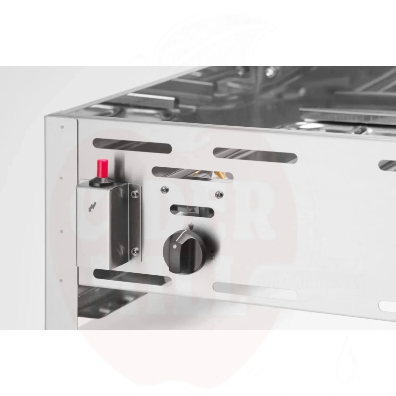 Avainsanat: kaasugrilli, ruostumaton grilli, profigrilli, nestekaasu grilli, ulkokeittiö, elektroninen sytytys, termopari grilli, grillilaite
