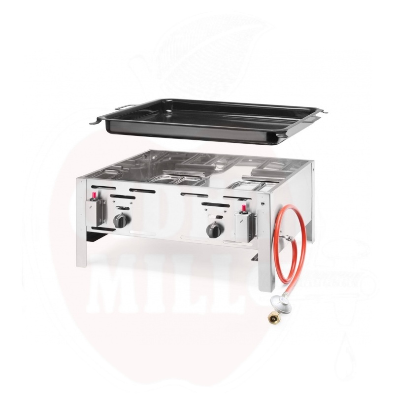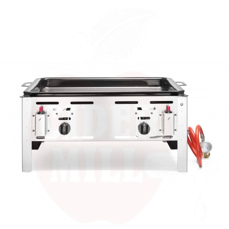 Kestävä ja tyylikäs ruostumattomasta 18/0 teräksestä valmistettu kaasugrilli on ihanteellinen valinta niin kotiin kuin ulkokeittiöönkin. Laite on varustettu emaloidulla paistotasolla, jonka avarat mitat 590x480x55mm mahdollistavat suurten ruokamäärien valmistamisen.