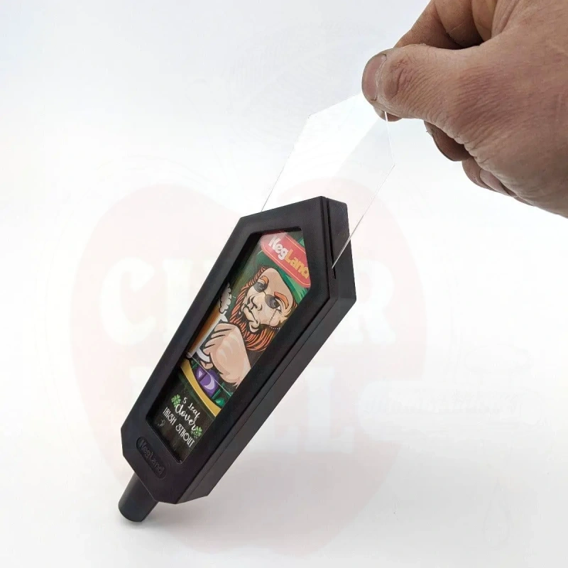 Käyttö: Tämä kätevä hananvarsi näyttää hienolta ja toimii kaikkien vakiohanojen kanssa. Tulosta grafiikat pöytäkirjostamellasi ja voit nähdä oman oluttarrasi tarrarungossa.