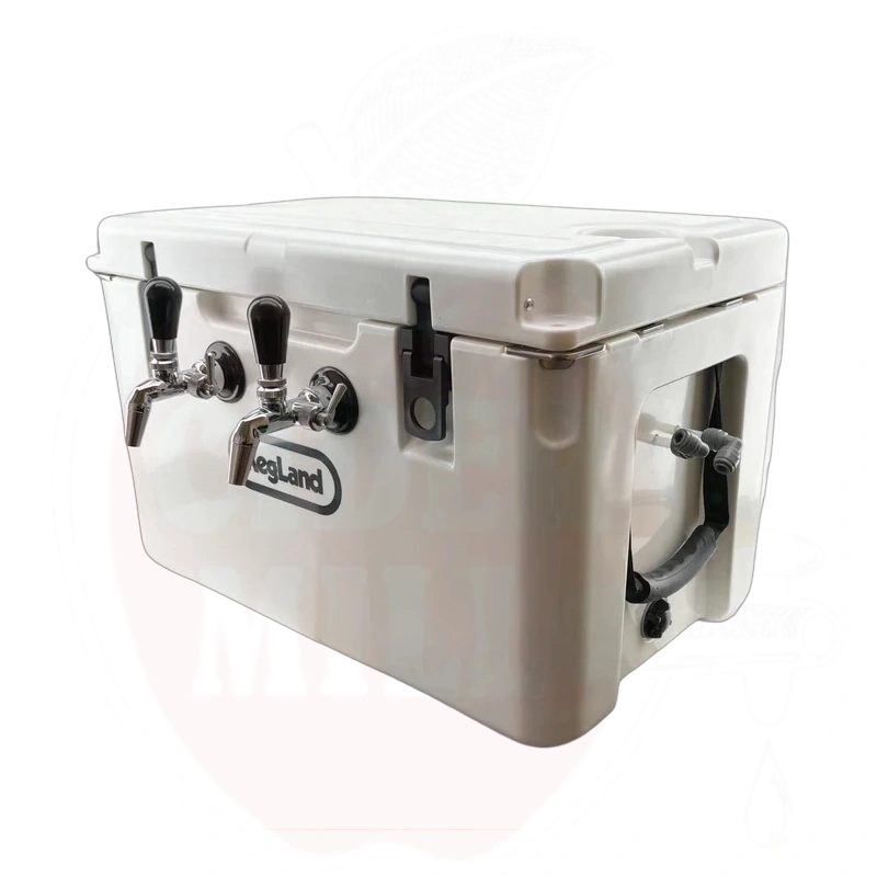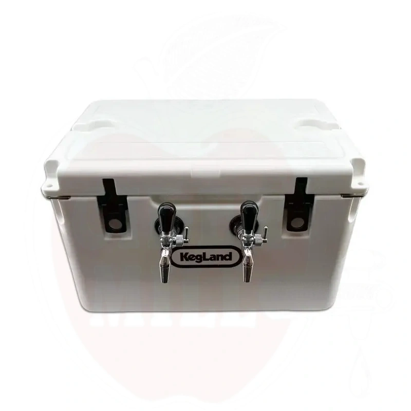 Kylmälaatikko kahdella hanalla ja jäähdytyslevyllä, kannettava