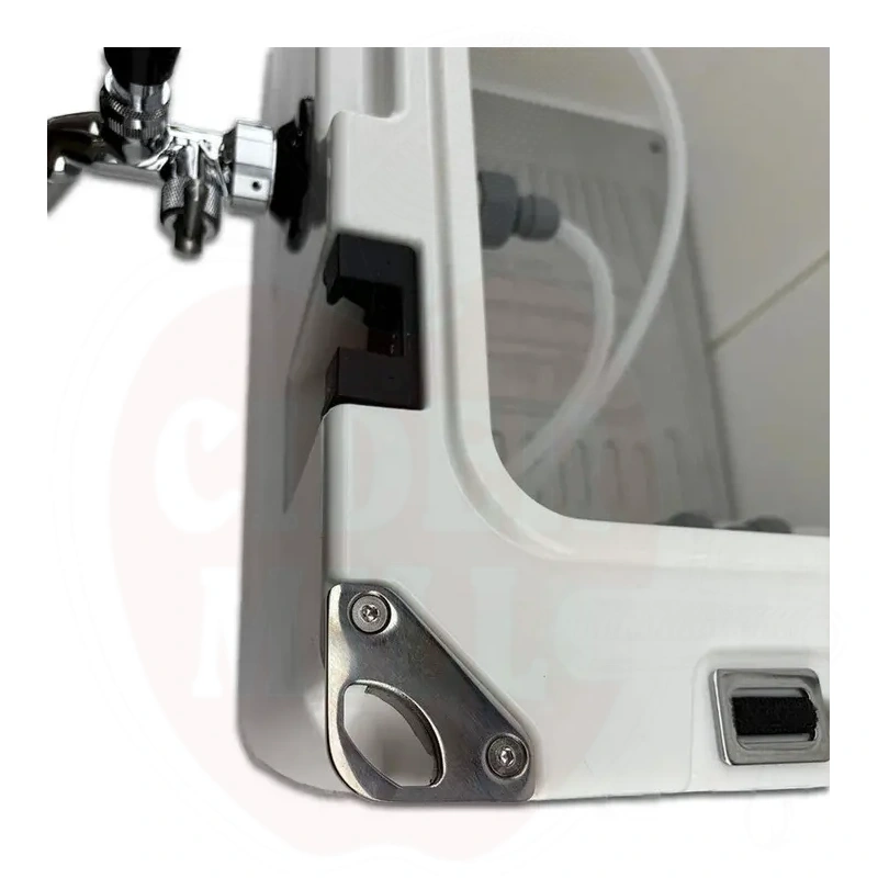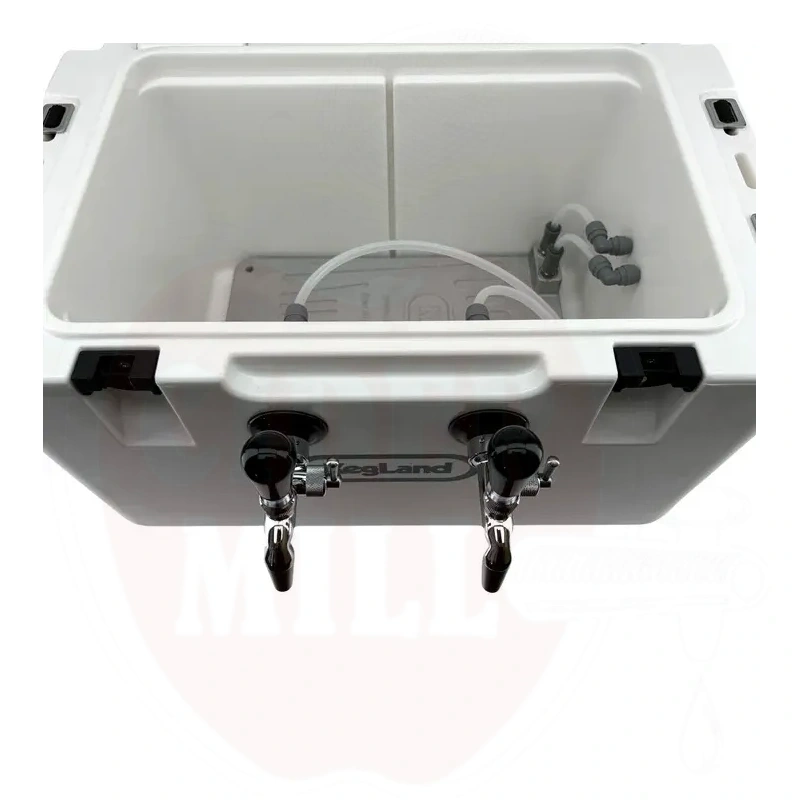 Kylmälaatikkoon on kaikki reiät porattu valmiiksi mukavuuttasi varten. Sinun tarvitsee vain työntää letkut yhteen, kiristää muutama mutteri ja voit heti kaataa juomia.