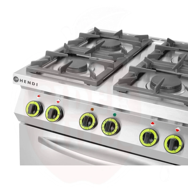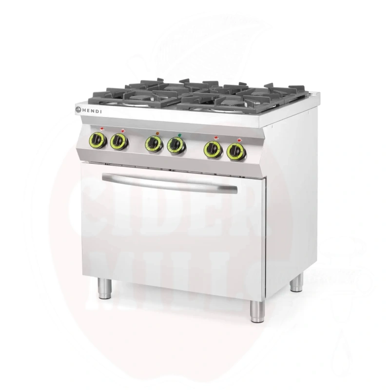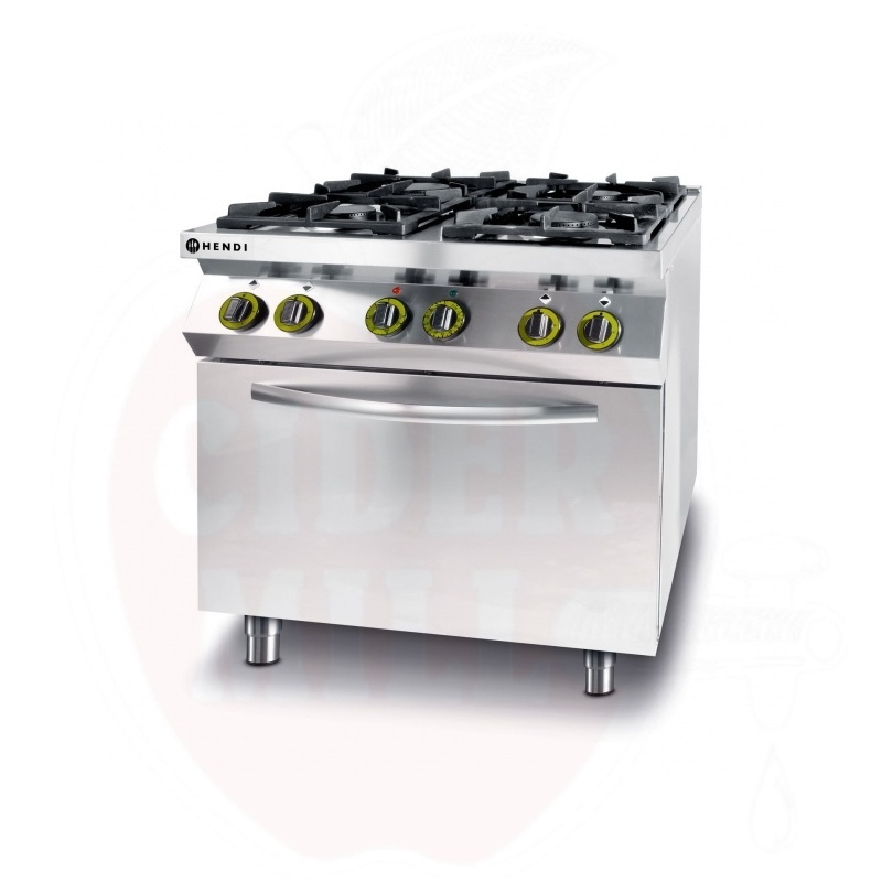 Kaasuliesi 4-polttimella konvektiouunilla GN 1/1, HENDI, 230V/3000W, 19kW, 800x722x(K)900mm