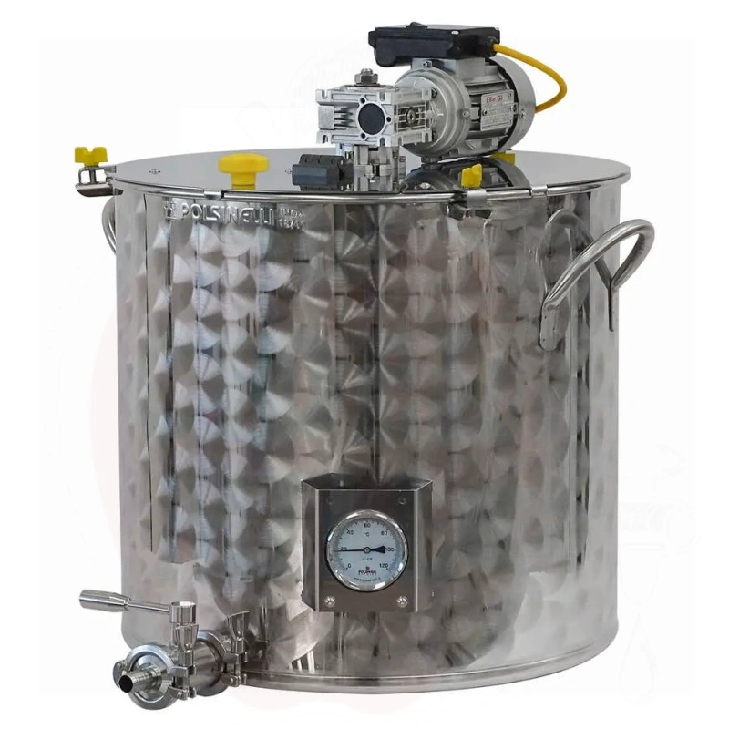 Paksu kansi, joka on kiinnitetty kattilaan ruostumattomasta teräksestä valmistetuilla koukuilla, varmistaa oikean lämpötilan säilymisen, myös mäskäyslapojen ansiosta, jotka pitävät tuotteen jatkuvassa liikkeessä 220V 0,09kW moottorilla varustetulla vaihteistolla.