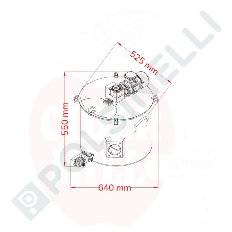 Valmistettu 18/10 ruostumattomasta teräksestä (AISI 304), joka takaa täydellisen kemiallisen vakauden, 50L CLAMP moottorilla varustettu kattila kunnioittaa tuotteen organoleptisiä ominaisuuksia.