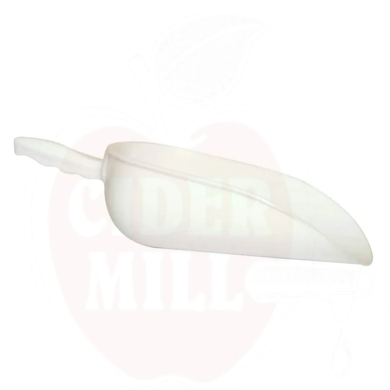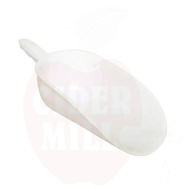 Käytännöllinen valkoisesta elintarvikemuovista valmistettu käsilapio on korvaamaton työkalu omenamehun tuotannossa ja säiliöiden huollossa. Kompakti kahva takaa mukavan otteen ja mahdollistaa tarkan annostelun.