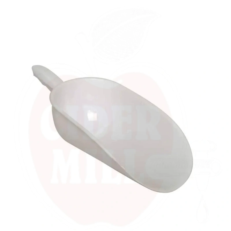 Kompakti valkoinen elintarvikemuovista valmistettu lapio on suunniteltu erityisesti omenateollisuuden ja mehuntuotannon tarpeisiin. Ergonomisella lyhyellä kahvalla varustettu lapio mahdollistaa tarkan ja mukavan käsittelyn.