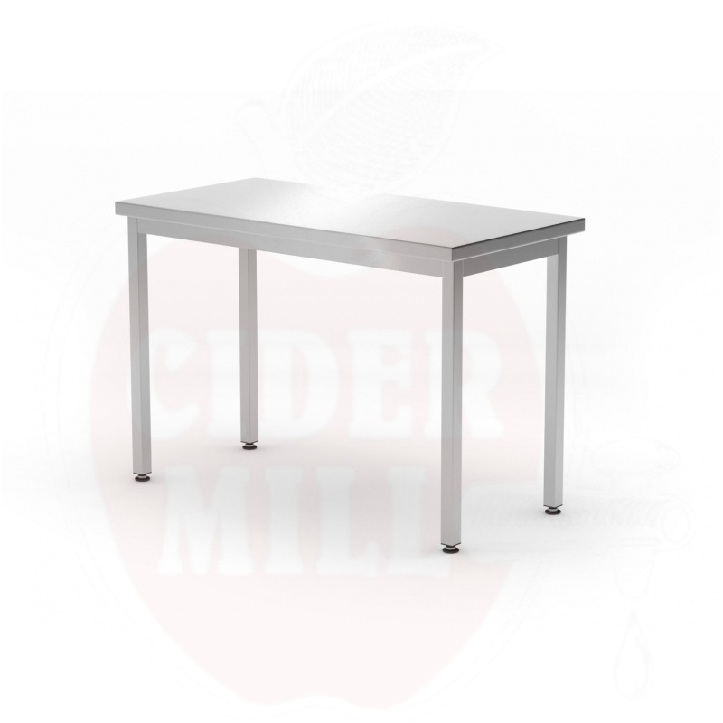 Työtaso sopii ihanteellisesti pienlaitteiden alustaksi tai apupöydäksi. Pulttikiinnitteinen rakenne mahdollistaa helpon kokoamisen ja kuljetuksen. Ruostumattoman materiaalin ansiosta pinta on hygieeninen ja helppo puhdistaa.