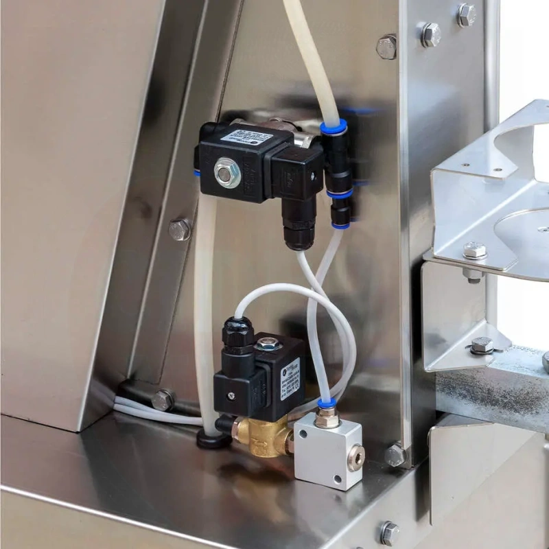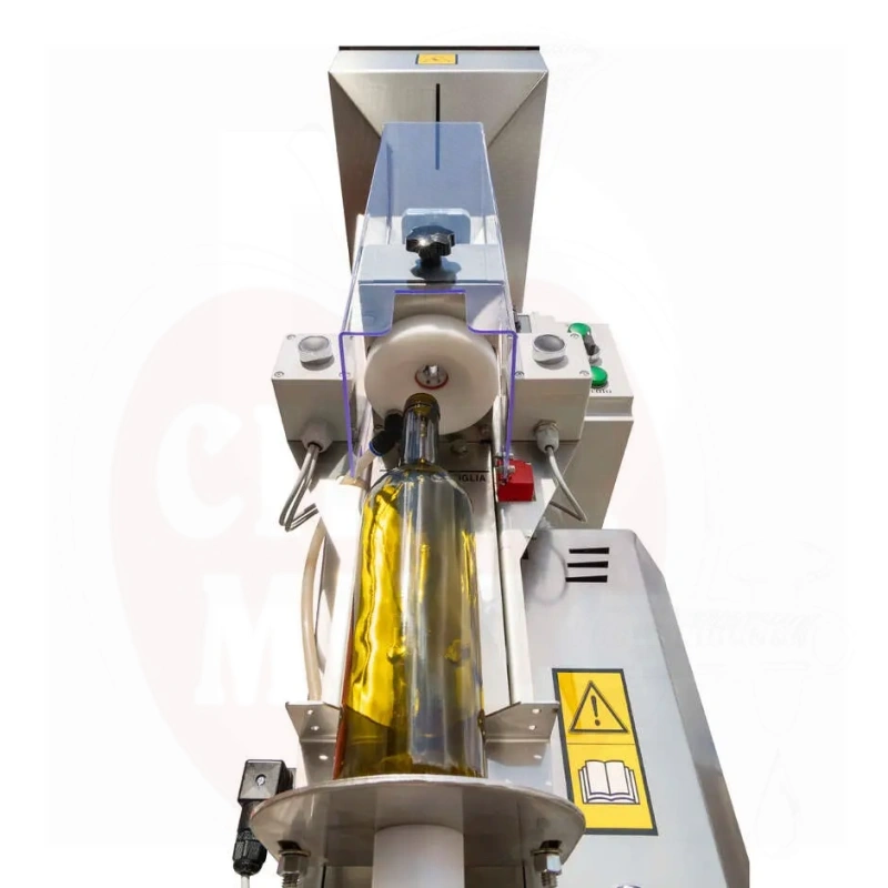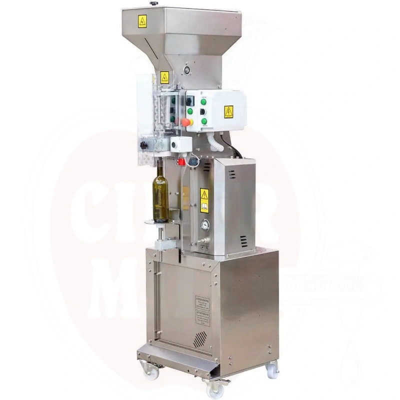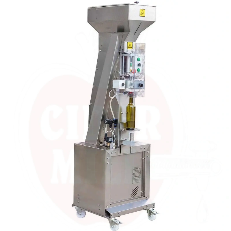 Ominaisuudet: Integroitu tyhjiöpumppu poistaa ilman pulloista ennen korkitusta. Typpiruiskutusjärjestelmä korvaa hapen hapettumisen estämiseksi. Liikuteltava kärry helppoon sijoitteluun tuotantoalueella. Sopii luonnonkorkeille ja synteettisille korkeille.