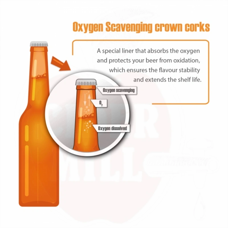 Laadukkaat happisulkevat 26mm kruunukorkit varmistavat juomiesi maksimaalisen tuoreuden ja pidennetyn säilyvyysajan. Nämä innovatiiviset korkit on varustettu erityisellä tiivisteellä, joka estää tehokkaasti hapen pääsyn pullossa olevaan nesteeseen.
