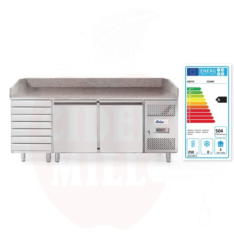 Kylmäpöytä pizzalle - 2 ovella, Arktic, 250L, 230V/250W, 2020x802x(K)1000mm