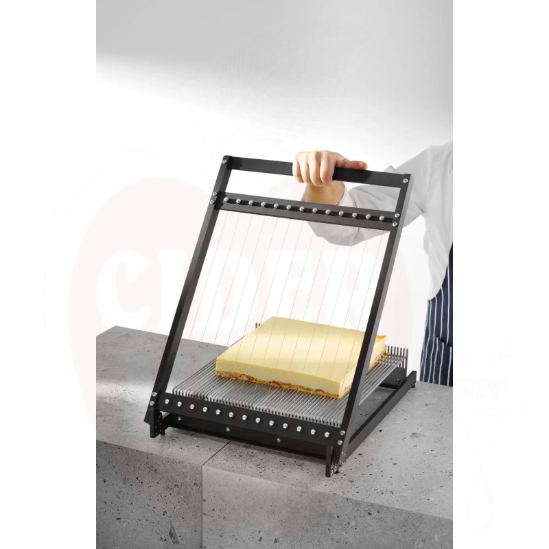 Avainsanat: leivonnaisten leikkuri, ganache-leikkuri, kakkuleikkuri, leipomotarvikkeet, leikkauslangat, konditorialaitteisto, kakkujen annostelu, elintarviketeollisuuden laitteet