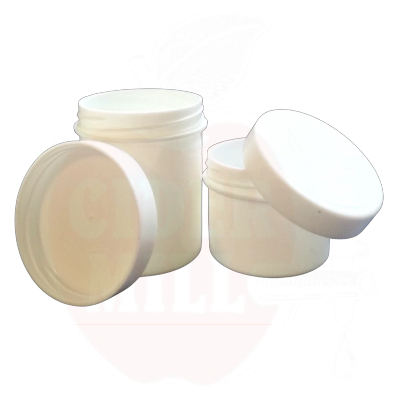 Muovipurkki 25ml kannella, valkoinen (XVI kierre)