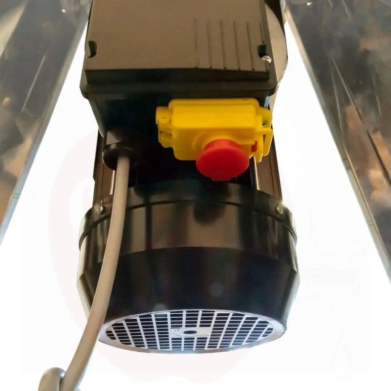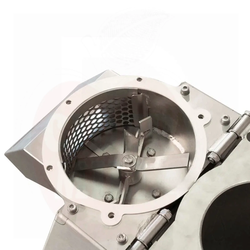 Ominaisuudet: Kokonaan AISI 304 ruostumattomasta teräksestä; yksivaiheinen 220V, 2,2kW moottori; vahvat säädettävät jalat; suuri syöttösuppilo; korkea tuottavuus 1000-1200kg/h; CE-standardien mukainen; varustettu hätäpysäytyspainikkeella turvallisuuden takaamiseksi.