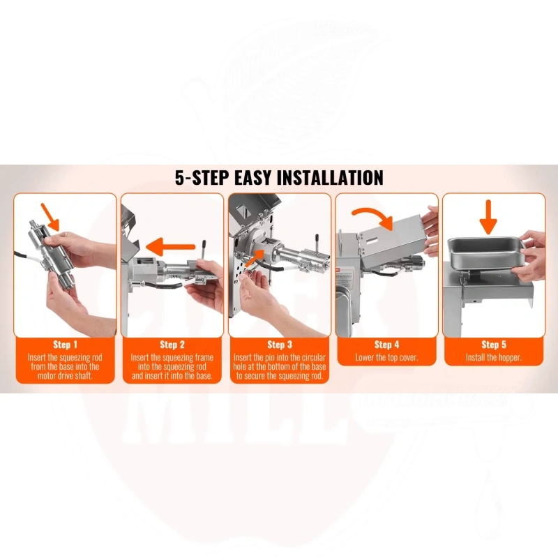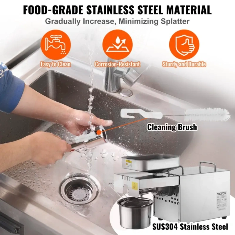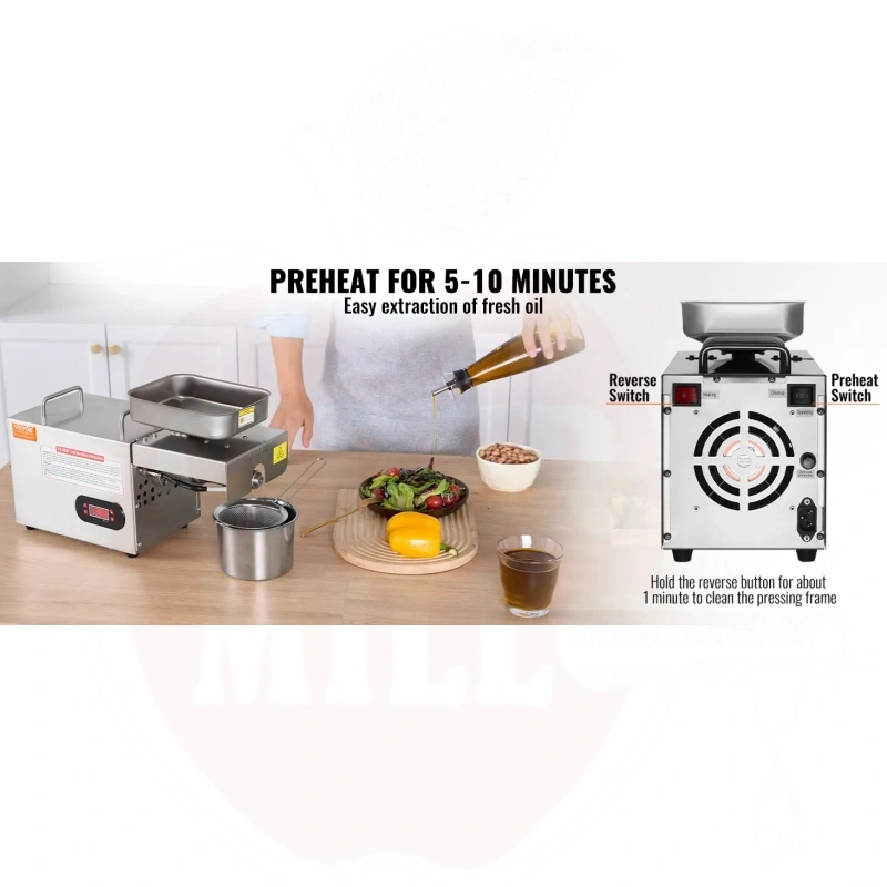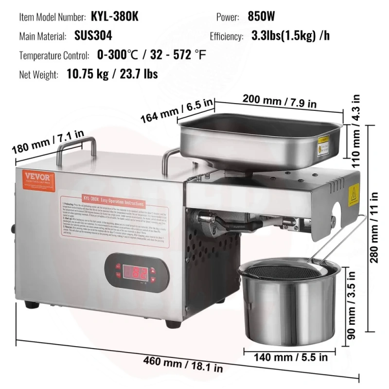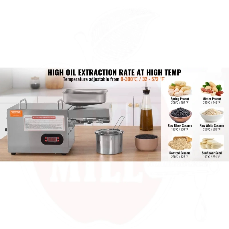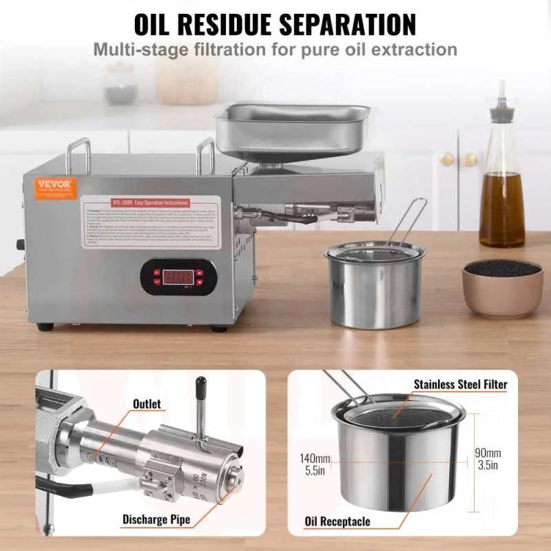 Öljynsiementen uuttoprosentti on jopa 95%. Teollisuusmoottorilla varustettu laite mahdollistaa 24 tunnin yhtäjaksoisen käytön. Energiatehokas ratkaisu 850W teholla.