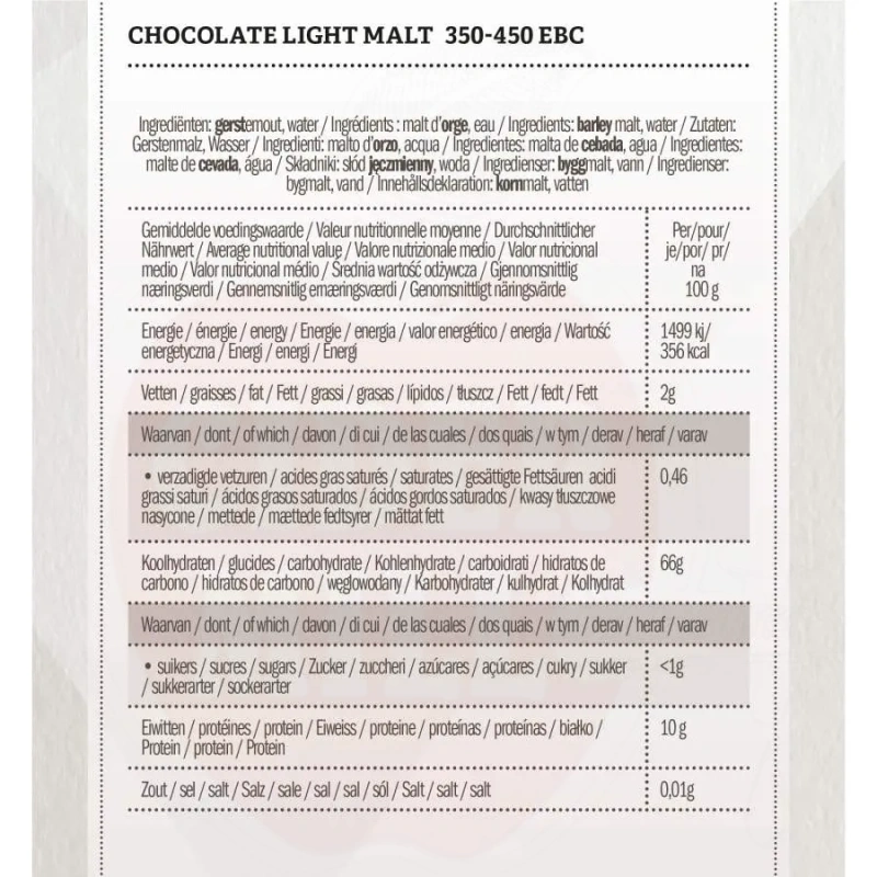 Chocolate Light Malt on erityinen paahdettu mallasvalmiste, joka valmistetaan huolellisesti valituista pilsner-maltaista. Tämä erityisellä valmistusmenetelmällä tehty mallasvalmiste on ihanteellinen valinta tummien oluiden valmistukseen.