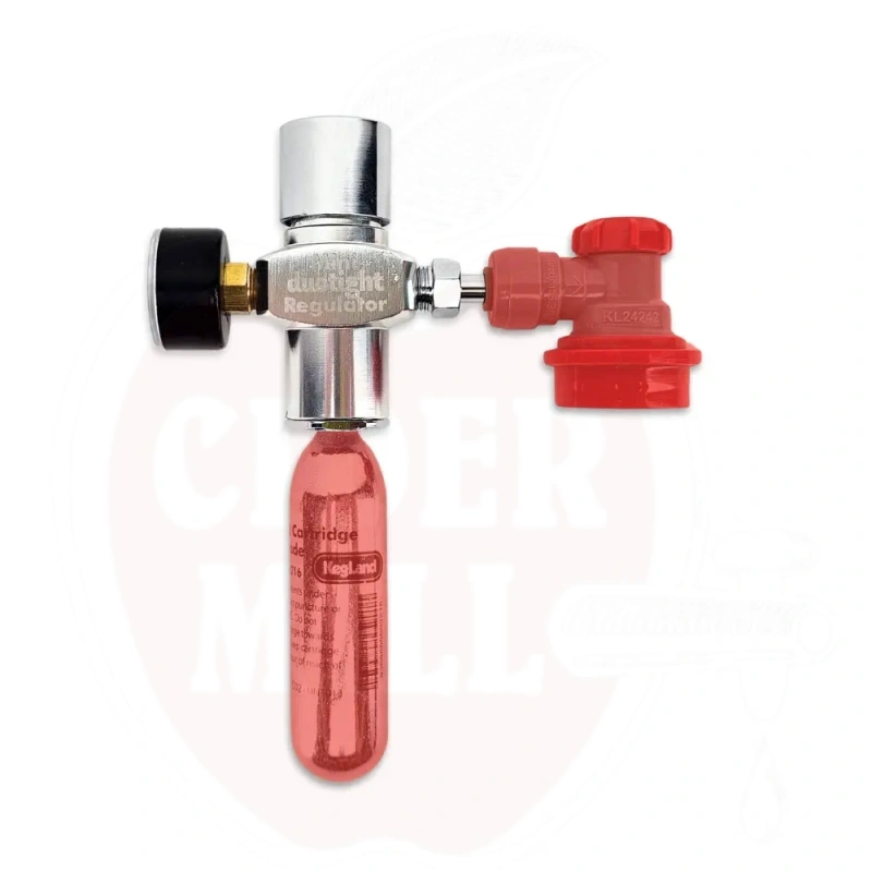 Ominaisuudet: Maksimipaine 30psi liiallisen hiilihapotuksen ja tynnyrivaurioiden estämiseksi. Mittari näyttää jopa 60psi:hin turvamarginaalina lämpölaajenemisen varalta. Yhteensopiva 16g ja 74g CO2-patruunoiden kanssa (5/8-18UNF kierre).