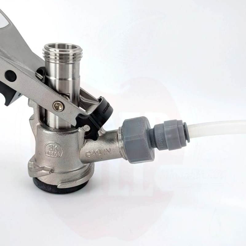 Käyttö: Ammattimainen pikaliitos turvallisiin liitoksiin kotipanimojärjestelmissä, viininvalmistuksessa ja juomajärjestelmissä. Suunniteltu 8mm ulkohalkaisijan EVABarrier-letkuille, joissa on 5/8" BSP-kierre tynnyriliittimiä, hanavarsia ja muita kotipanimostandardiliittimiä varten.