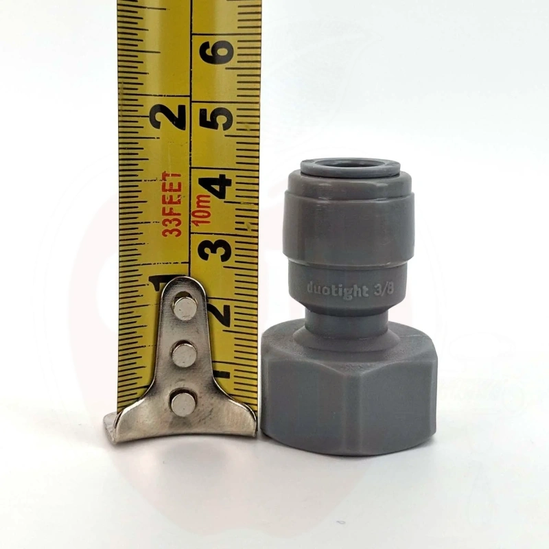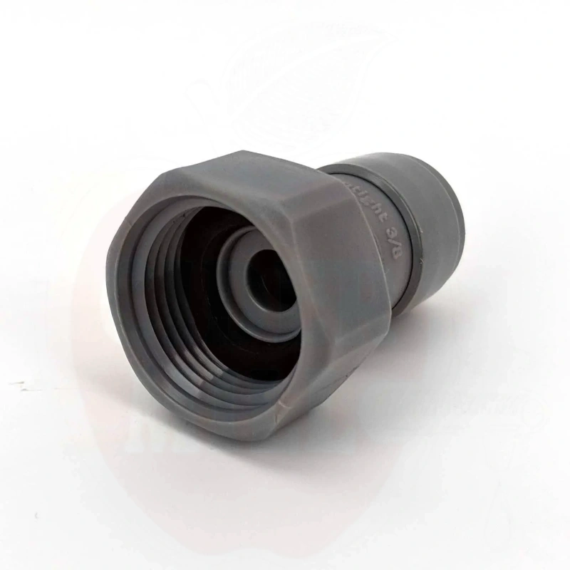 Tekniset tiedot: Liitoksen koko: 9,5mm (3/8") pikaliitos 5/8" kierteeseen. Materiaali: EPDM O-renkaat (Eteeni Propyleeni Kumi) - erinomainen kemiallinen kestävyys, yhteensopiva otsonin, öljyjen, emäksisten ja happamien yhdisteiden, veden, alkoholin, ketonien ja juomien kanssa. BPA-vapaa. Ei yhteensopiva EVABarrier 4mm sisähalkaisija x 8mm ulkohalkaisija tai 5mm sisähalkaisija x 8mm ulkohalkaisija letkun kanssa. Yhteensopiva vain EVABarrier 6mm sisähalkaisija x 9,5mm ulkohalkaisija letkun kanssa.