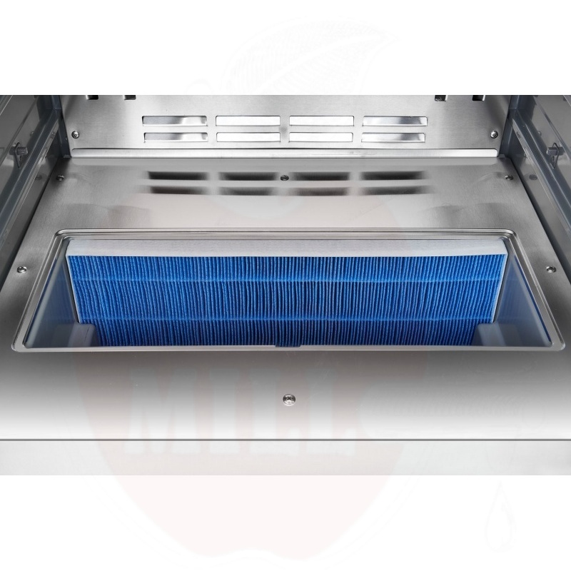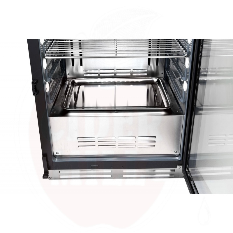 Laadukas ruostumattomasta teräksestä AISI 304 valmistettu tuotantokaappi savustamiseen ja lihatuotteiden kuivaamiseen. Kaappi on varustettu tukevalla hyllyllä, joka kestää kuormitusta jopa 30 kg. Lisätuotteiden ripustamista varten on lisätty käytännöllinen ripustustanko ja kolme vahvaa koukkua.