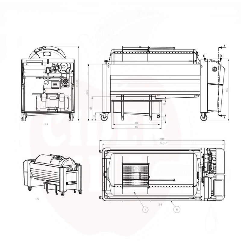 Käyttö: Ammattimainen vaakasuora pneumaattinen puristin viininvalmistukseen ja hedelmien käsittelyyn. Ihanteellinen viinirypäleiden, omenoiden ja muiden hedelmien puristamiseen keskisuuressa ja suuressa tuotannossa.