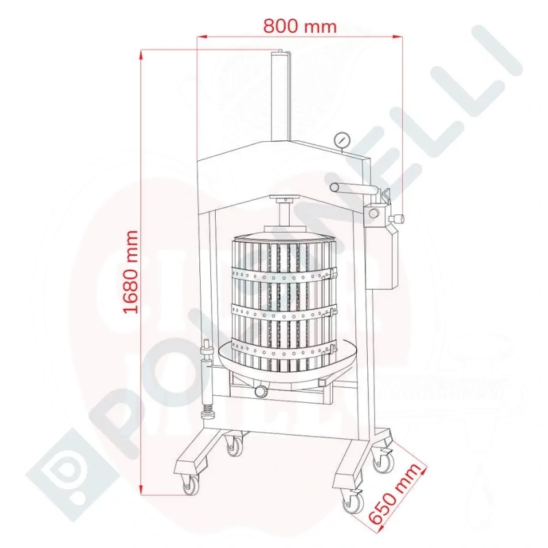 Käyttö: Ammattimainen vertikaalinen puristin kotiviinin ja hedelmämehun valmistukseen. Ihanteellinen rypäleiden, omenoiden, marjojen ja muiden hedelmien puristamiseen.
