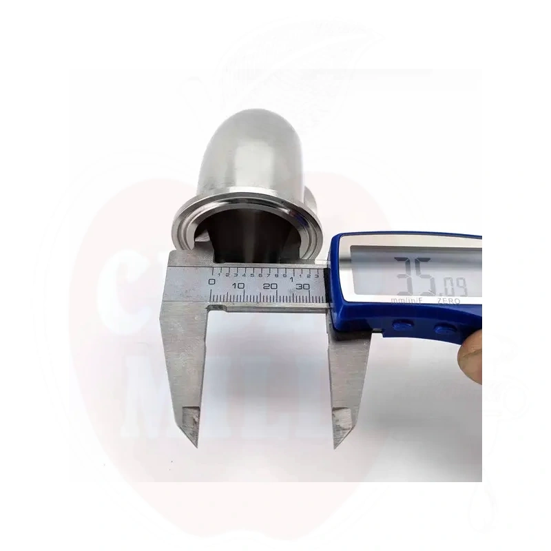 Laadukas 304 ruostumattomasta teräksestä valmistettu 1,5-tuumainen (38mm) Triclover-putkikulma takaa maksimaalisen hygienian elintarvikkeiden käsittelyssä. Saniteettiset hitsausliitokset täyttävät korkeimmat elintarviketurvallisuusstandardit.